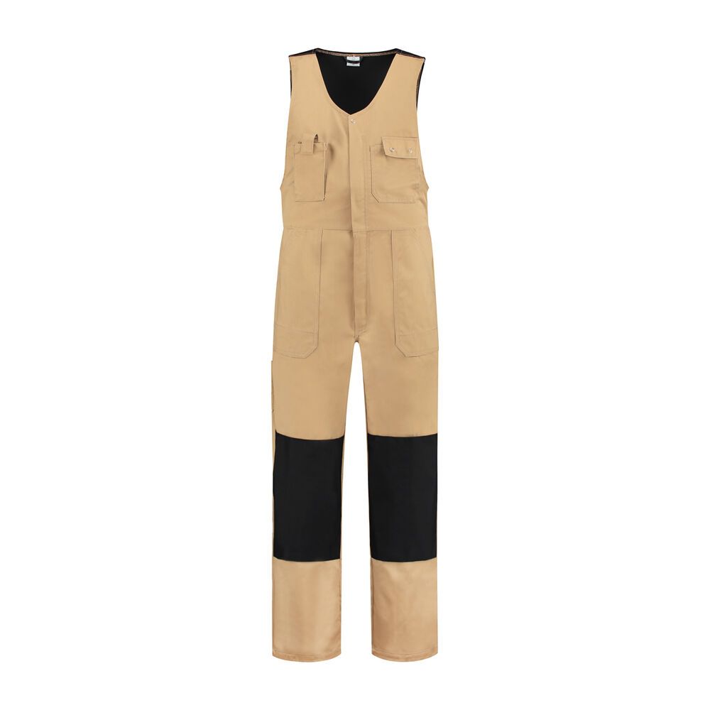 Bodybroek katoen/polyester, 65% katoen / 35% polyester, 280 gram/m2, ritssluiting, elastisch rugpand, cordura kniezakken, 1 borstzak metpennenzakje, 1 telefoonborstzak, 2 zijzakken, 2 intasten, 1 achterzak met drukknoopsluiting, duimstokzak en rolmaatzak