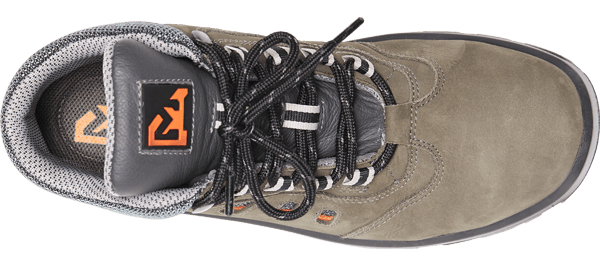 De Ranger is de hoge variant van de Rocky en heeft 4 rijen veterlussen en 1 rij veterhaken en een smalle leest (D). De bovenkant is grijs en de tong en hielpolstering zijn zwart, evenals de loopzool. Deze fijne S3 werkschoenen wegen 719 gram.