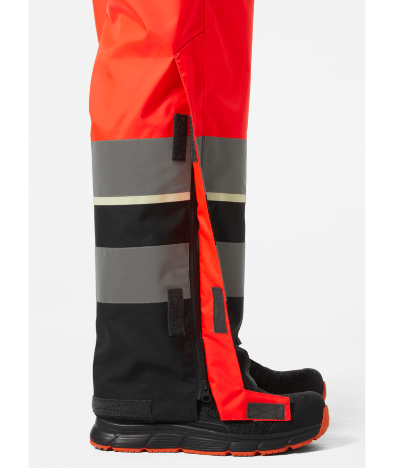 De Class 2 versie van de UC-ME SHELL PANT heeft volledige lengte hoog zichtbare stof, samen met brede reflecterende strepen. Werkbroeken blijven op hun plaats met een professionele elastische tailleband van hoge kwaliteit. Compatibiliteit met 79550 HH WW SUSPENDERS 2.0 biedt meer veiligheid en bewegingsvrijheid. Laarzen blijven bedekt en beschermd met de kniehoge rits, stormflap en sluiting. De handige dijbeenzak beschermt inhoud met beschermende flap en sluiting, terwijl een liniaalopening en een ID-kaartlus welkome toevoegingen zijn aan werkkleding.