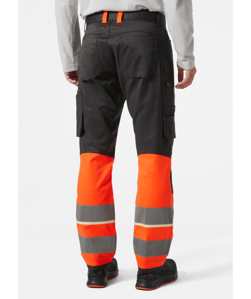 Helly Hansen Workwear UC-ME WERKBROEK KLASSE 1 verbetert werkkleding tot essentiële uitrusting. Met details zoals gearticuleerde knieën en een inzetkruis bieden deze broeken flexibiliteit waar je het meest nodig hebt. Pas aan met verstelbare kniebeschermerpositionering en een optionele extra vijf cm in lengte. Mechanische tweeweg stretchstof en plastic-gecoate metalen knopen zorgen voor comfort en duurzaamheid. Praktische geïntegreerde functies omvatten een liniaalzak, een ID-kaarthouderlus, en een gesloten sluiting op de dijbeenzak.