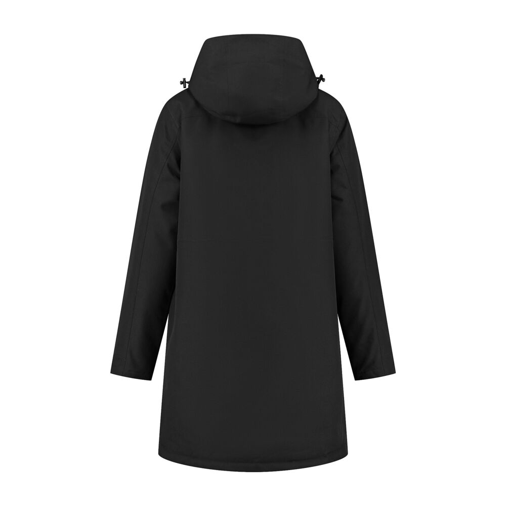 Parka, 100% polyester, 180 gr/m2, gevoerde parka met afneembare en verstelbare capuchon, gewatteerd, stof is gecoated en daardoor winddicht, waterdicht 5000 mm waterkolom en ademend 5000 gr/m2/24h. Opstaande kraag met voorsluiting 2-way YKK rits, voorzakken met waterafstotende YKK ritsen. Mouw met windstopper, 1 binnen borstzak, 2 binnen heupzakken en een printrits aan de binnenzijde. Alle naden aan de binnenkant zijn waterdicht getaped. Taille verstelbaar aan de achterkant middels koord/stopper.