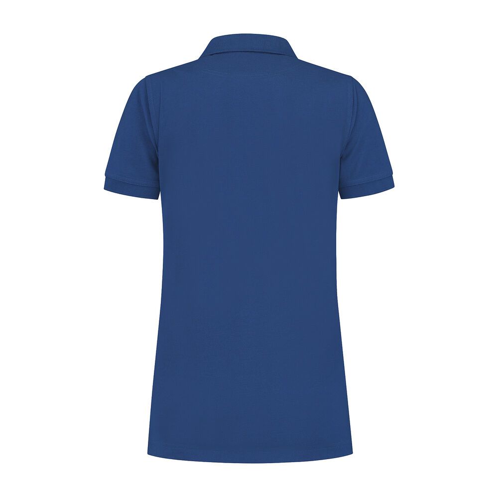 Poloshirt, 50% polyester / 50% lange vezel katoen, 220 gr/m², pique, ladies fit met polo-ribkraag en 4-knoopsluiting, korte mouwen met ribmanchet, splitjes in zijnaad, schouders voorzien van een dubbele laag stof voor extra versteviging, halve maan en antibacteriële afwerking. (Sport grey is melange: 85% gekamd katoen / 15% viscose).