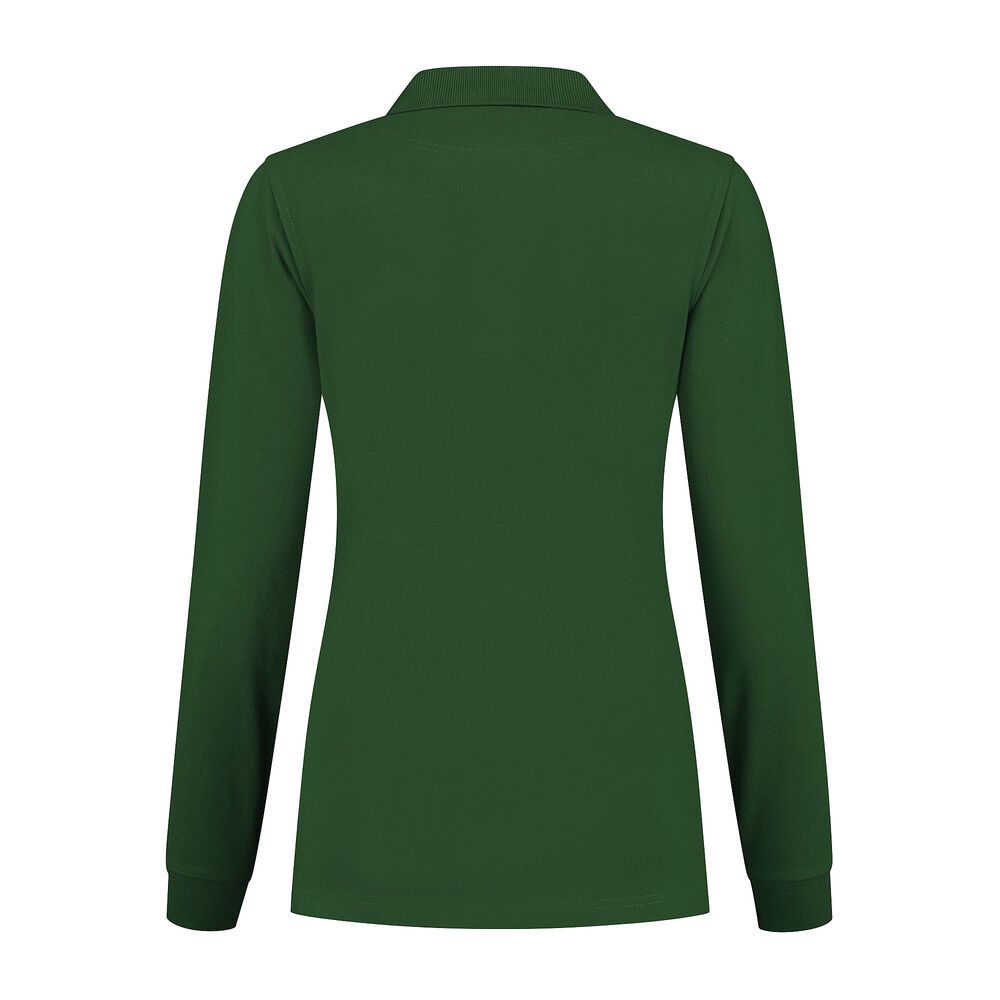 Poloshirt met lange mouw, 50% polyester / 50% lange vezel katoen, 220 gr/m², pique, ladies fit met polo-ribkraag, en 4-knoopsluiting, lange mouw met ribmanchet, 1x1 ribboord, splitjes in zijnaad, schouders voorzien van een dubbele laag stof voor extra versteviging, halve maan en antibacteriële afwerking. (Sport grey is melange: 85% gekamd katoen / 15% viscose).