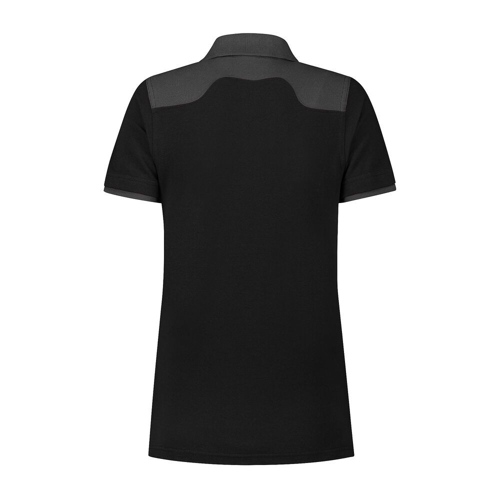 Poloshirt, 60% katoen / 40% polyester, 210 gr/m², piqué, ladies fit met polokraag, 3-knoopsluiting, splitjes in zijnaad, kraag, schouderstuk en mouwuiteinde in contrast kleur en verlengd achterpand.