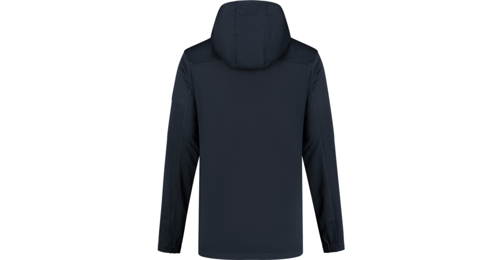 Softshell jacket, 100% polyester, 180 gr/m2, 3-laags lichtgewicht softshell jacket met verstelbare capuchon, zak op linkermouw in naad verwerkt, steekzakken met rits, YKK ritssluiting, onderzijde verstelbaar met koord en koordstopper. Alle naden aan de binnenkant zijn afgewerkt met mesh band. Waterafstotend, winddicht en ademend.