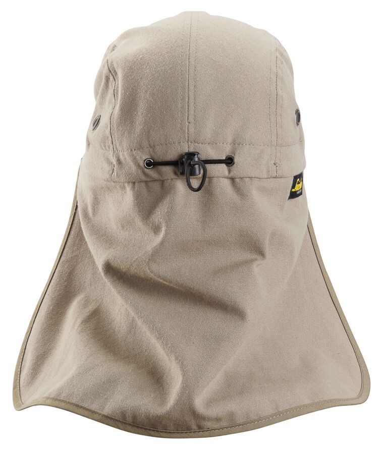 ·Veelzijdige, zonbeschermende cap die uitstekende bescherming biedt tegen fel zonlicht tijdens de dagelijkse werkzaamheden. De cap is gemaakt van een UV-gecertificeerd materiaal met UPF 50+ en heeft een beschermende rand aan de voorkant en flappen die de oren, zijkanten en achterkant van de nek bedekken. Ventilatiegaatjes op strategische plekken geven efficiënte koeling terwijl een trekkoord in de capuchon voor een sluitende pasvorm zorgt.c