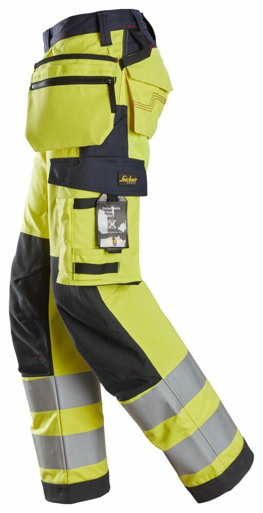 Gemakkelijk toegankelijke beenzakken inclusief mesbevestiging, vak voor een mobiele telefoon en afneembare ID-badge, alsmede een schakelkastsleutel- en meshouder. Gereedschapslussen aan beide zijden.