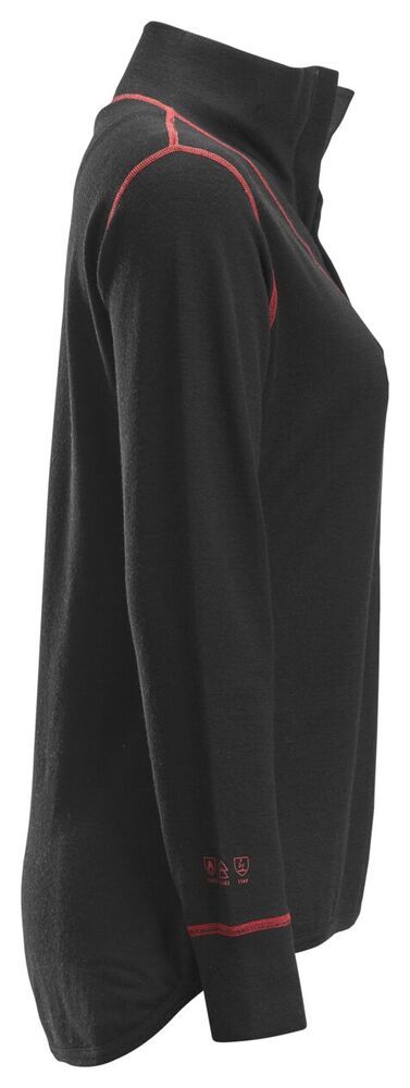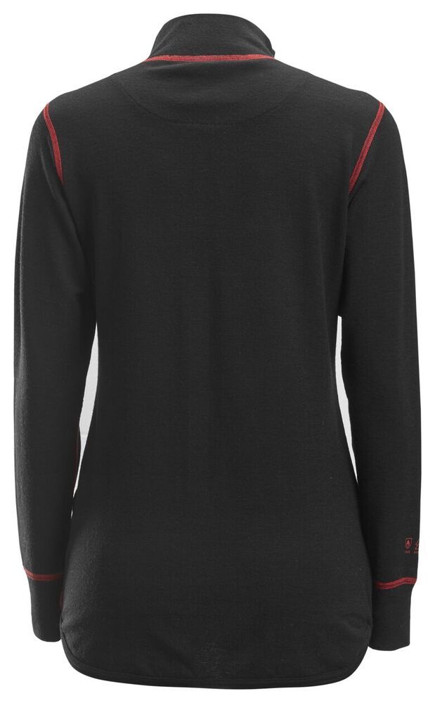 Beschermende basislaag shirt met lange mouwen gemaakt van een vlamvertragend wol/viscose mengsel dat gecertificeerde bescherming biedt tegen elektrische vlambogen, statische elektriciteit, hitte en vuur. Het beschermende shirt heeft een pasvorm speciaal voor dames zodat het betere bewegingsvrijheid en comfort gedurende de hele werkdag biedt. De halve rits zorgt voor snelle en eenvoudige ventilatie. Combineer het met ProtecWork kledingstukken voor de tussen- en buitenlaag voor een nog betere bescherming