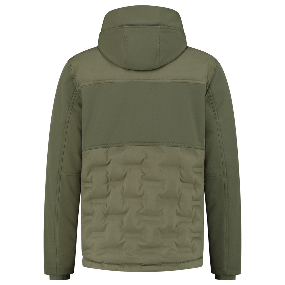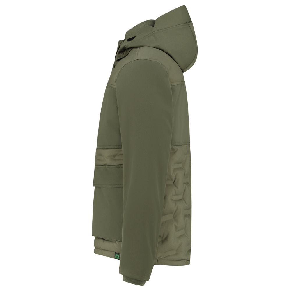Het puffer jack heeft een comfortabele ribkraag in de hals. Ook de manchetten zijn voorzien van een ribmanchet. De capuchon heeft een uitsparing aan de zijkant voor extra zicht en is volledig afneembaar middels drukkers. Met de verdekte koordstopper kun je de capuchon verstellen. Aan de binnenkant van de werkjas zit een uitneembare rib windvanger met antislip elastiek. De onderkant van de werkjas is verstelbaar middels het koord aan de binnenzijde. Er zijn voldoende opbergmogelijkheden: twee binnenzakken, borstzak met rits en de zakken op het voorpand hebben zowel aan de boven- als aan de zijkant een ingang die ook afsluitbaar is. Vanwege de puffer look is er op het linker voorpaneel en het achterpand gebruik gemaakt van constrast softsell, zodat je de werkjas kunt bedrukken. Er is ook een printerrits aanwezig. Maak je outfit compleet met de overige items uit de Rewear collectie.